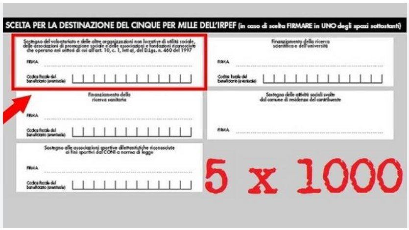 E' possibile destinare il 5x1000 – senza nessun costo aggiuntivo – ad enti ed associazioni del Terzo Settore non profit.